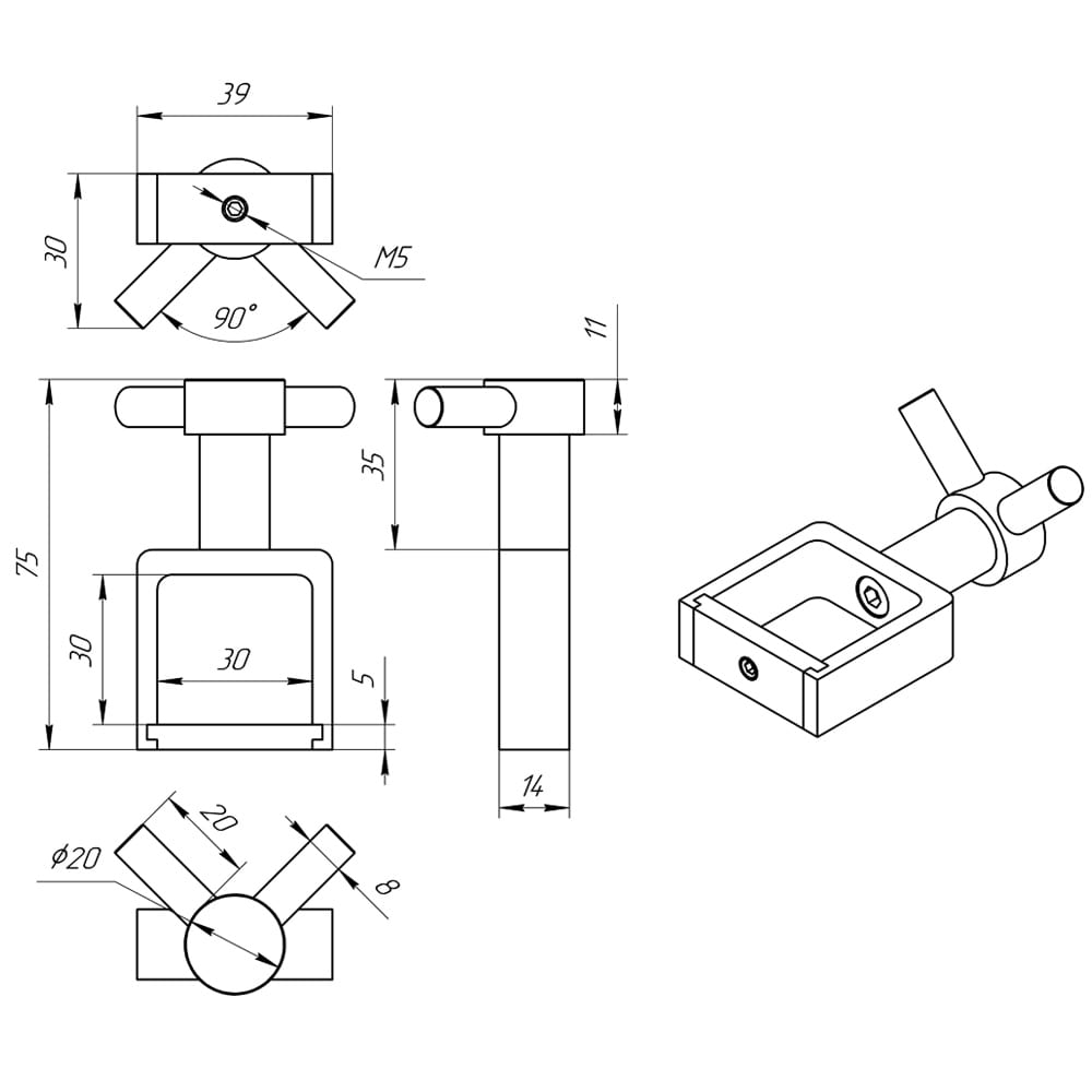 Схема - Гачок Laris ВКР-12 Кватро роз'ємний на стійку □ 30 мм