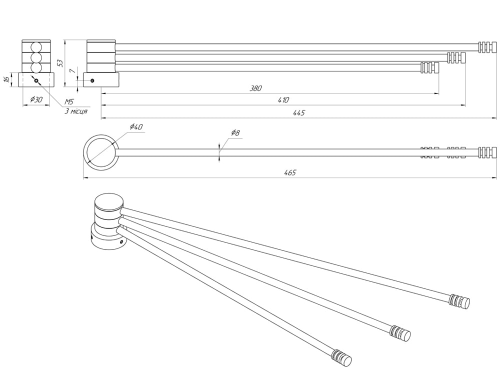 Схема - Полка поворотна для рушникосушарки Laris ПП-450/3 Класік на стійку Ø30 мм