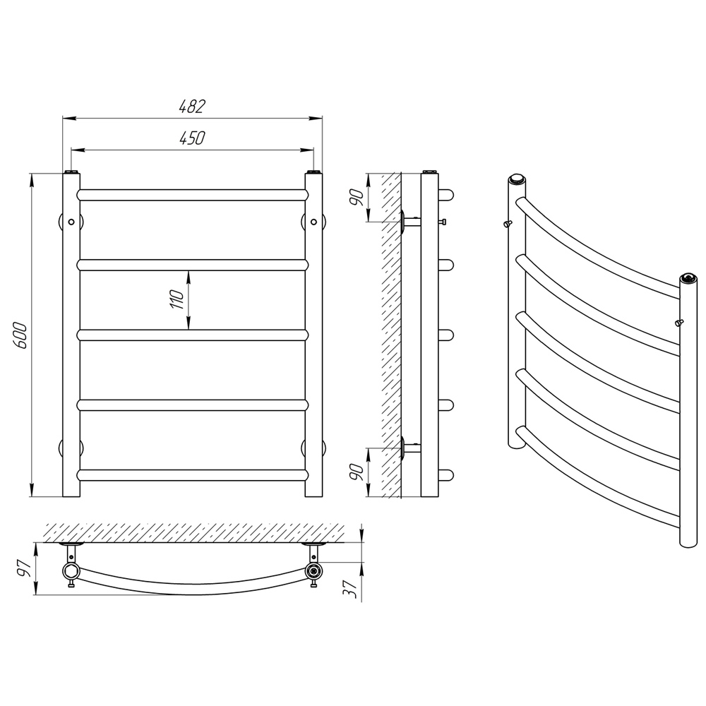 Схема - Водяна рушникосушарка Laris Класік-32 П5 450 х 600
