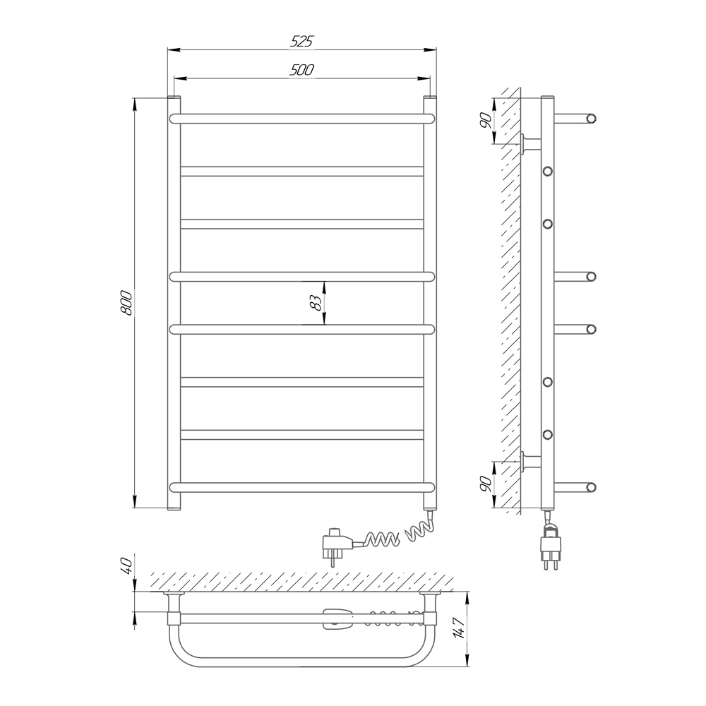 Рушникосушарка – 1 шт, кріплення (шуруп оцинкований з дюбелем, пластикове кріплення, різьбова втулка, штифт) - 4 шт, ключ шестигранний – 1 шт, упаковка (короб картонний, чохол поліетиленовий, чохол поліетиленовий для кріплення, коробочка для кріплень) – 1 шт., паспорт — 1 шт.