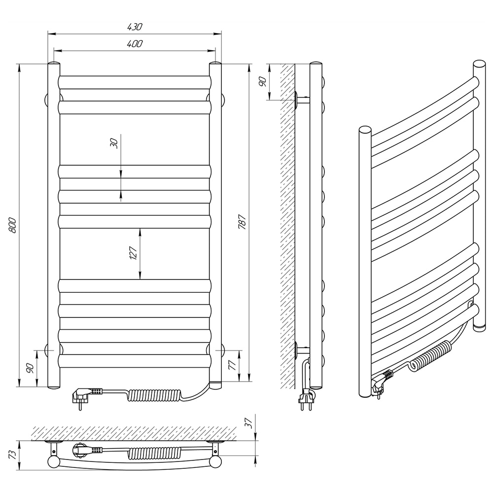 Схема - Електрична рушникосушарка Laris Класік Преміум П9 400 х 800 Е (підкл. справа) S3